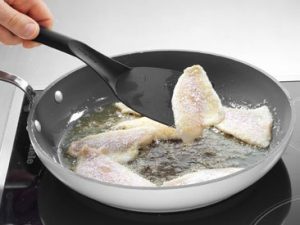 Eglifilets portionenweise im heissen Öl in einer beschichteten Bratpfanne beidseitig je ca. 1 1/2 Min. braten.