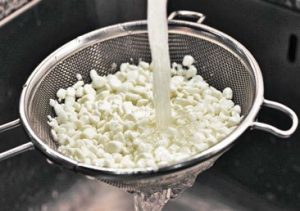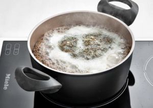 Linsen im siedenden Wasser ca. 20 Min. weich kochen, abspülen, abtropfen.