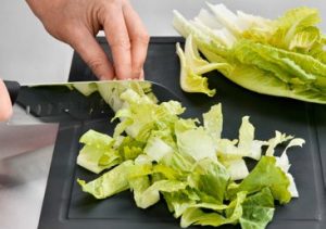 Lattich in Streifen schneiden. Schalotten fein hacken, im warmen Öl andämpfen. Lattich ca. 5 Min. mitdämpfen, salzen.